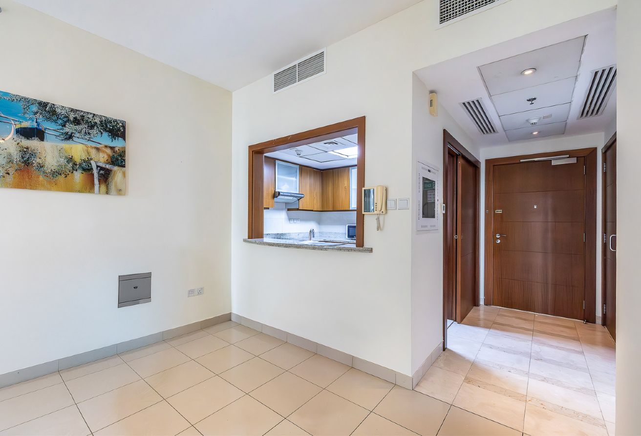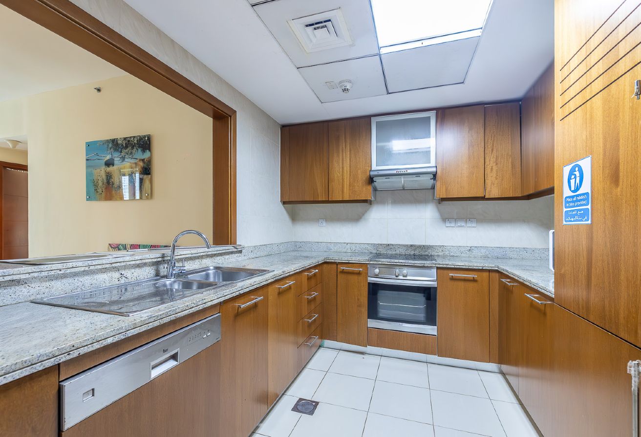 The semi-open kitchen is well-appointed with quality cabinetry and practical layout, ideal for everyday living. Both bedrooms are generously sized and fitted with built-in wardrobes, while 2 modern bathrooms complete the home with sleek finishes.