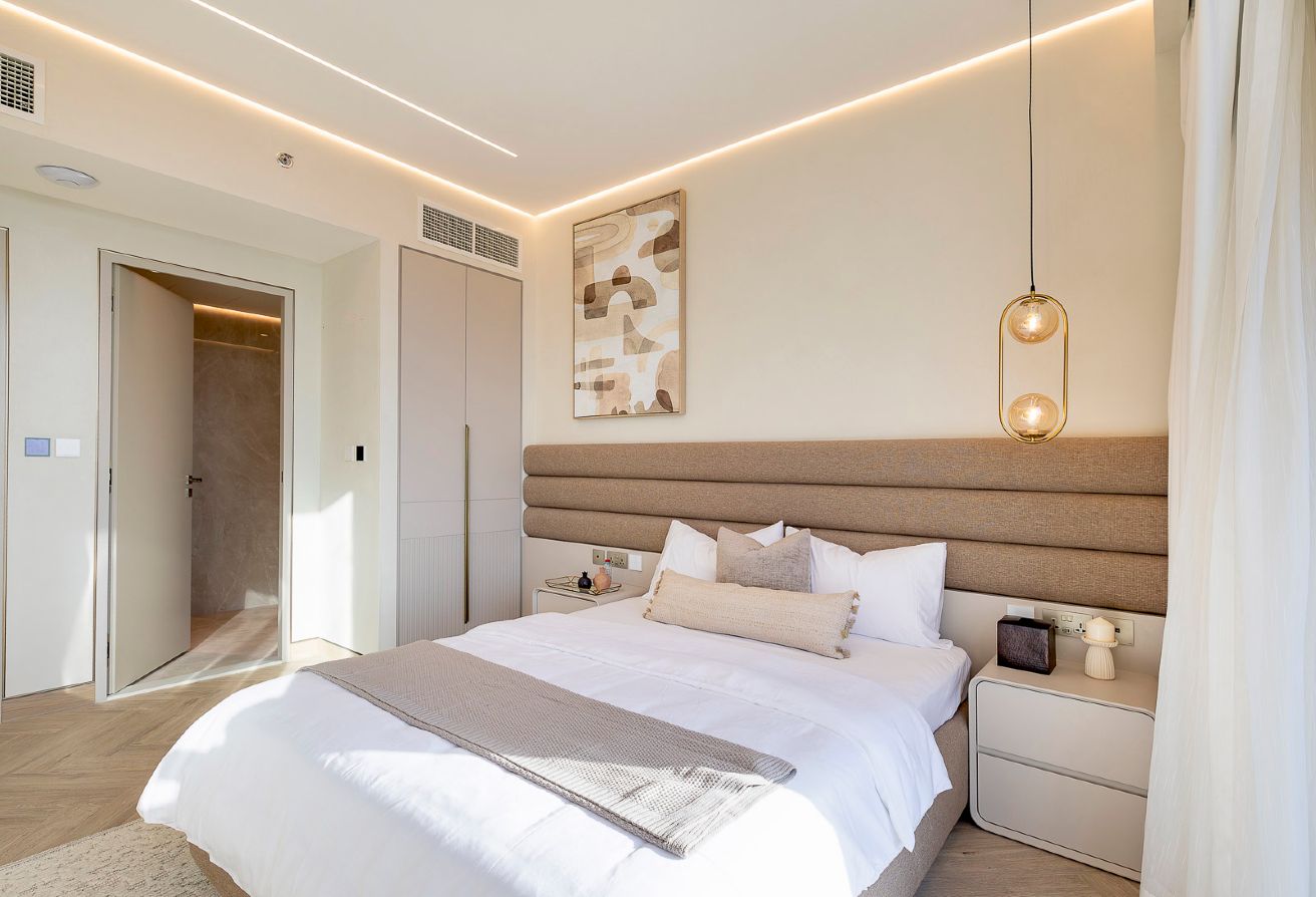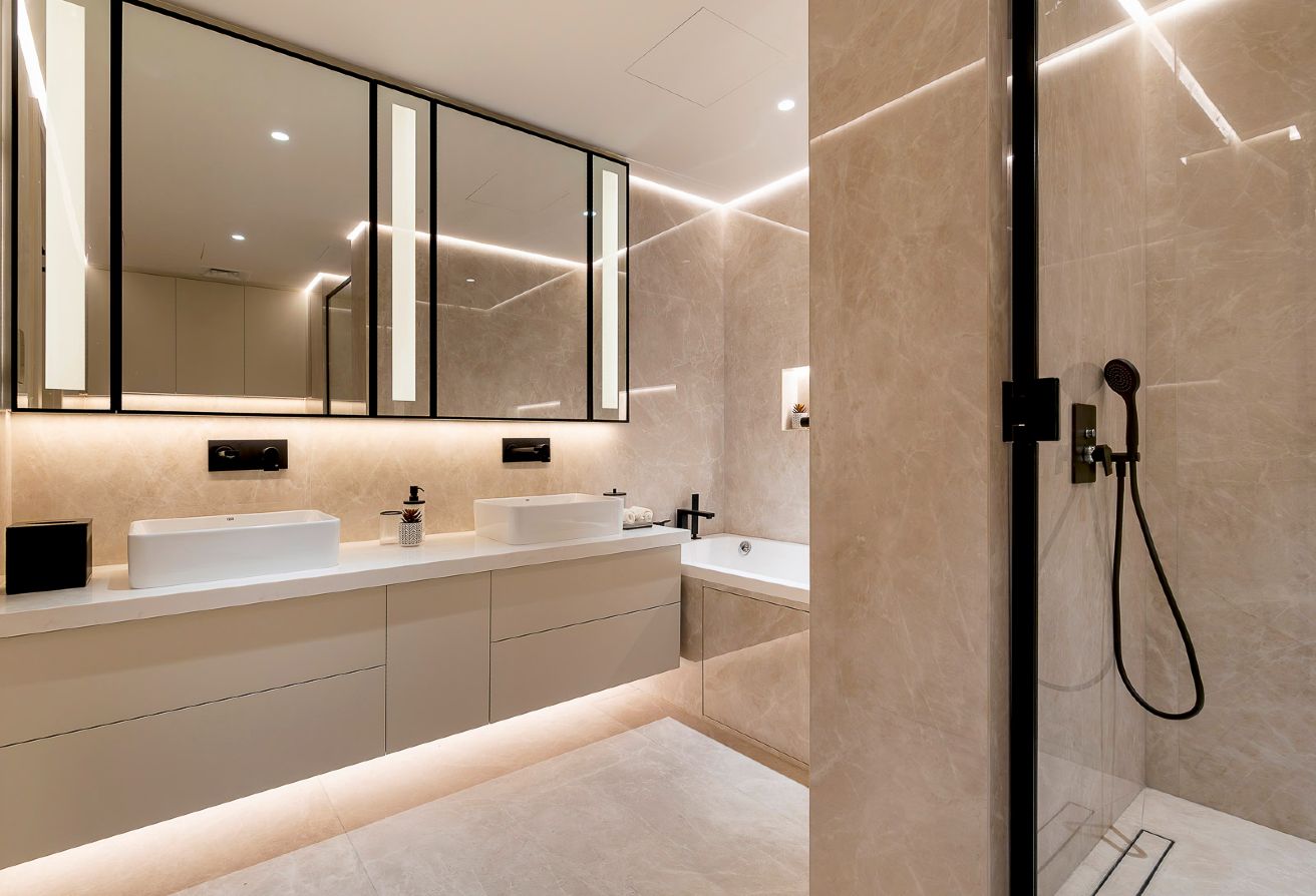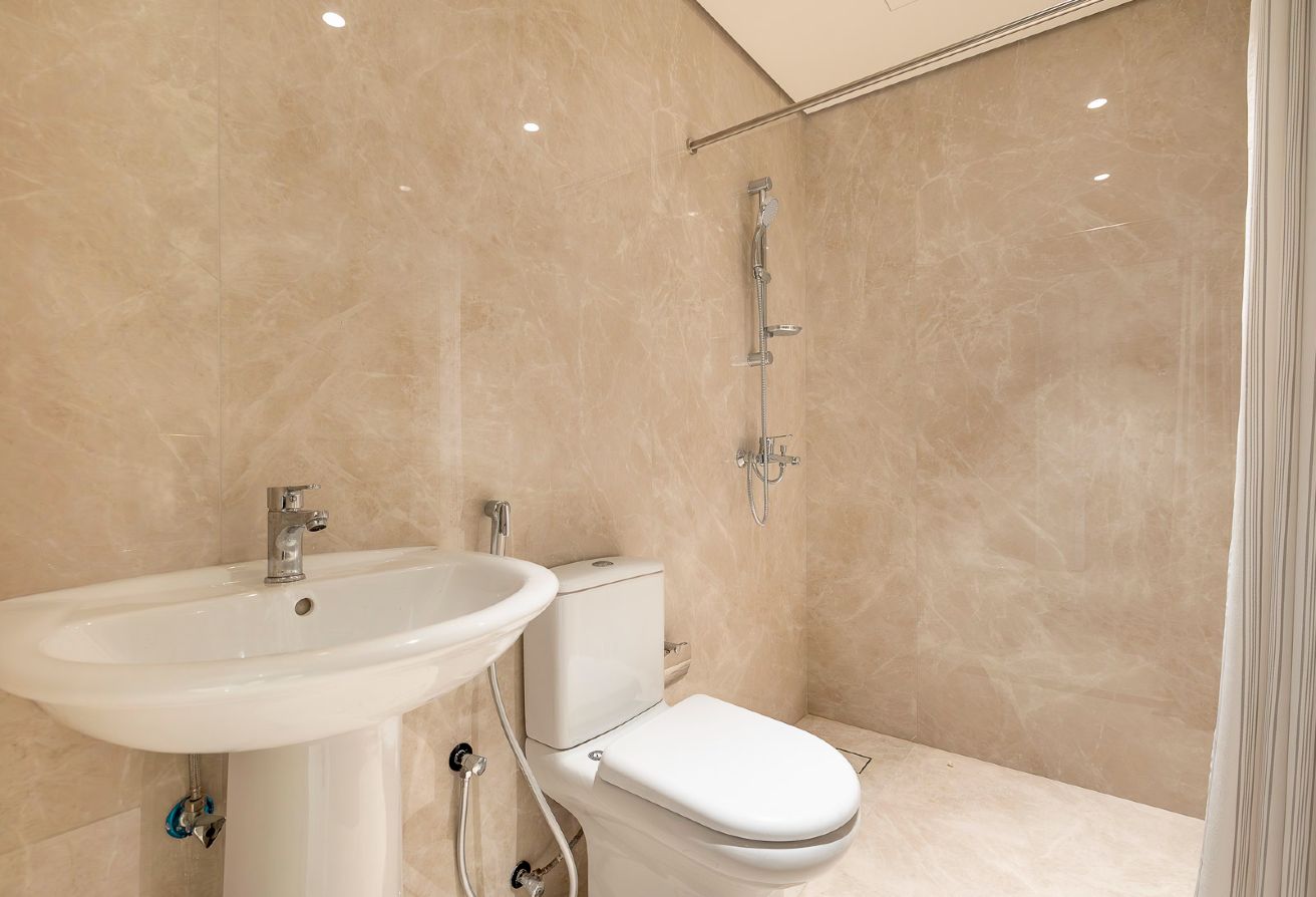 All three bedrooms are generously proportioned and come with built-in wardrobes and en-suite bathrooms, ensuring comfort and privacy. The master suite enjoys uninterrupted skyline views, creating a serene urban retreat.