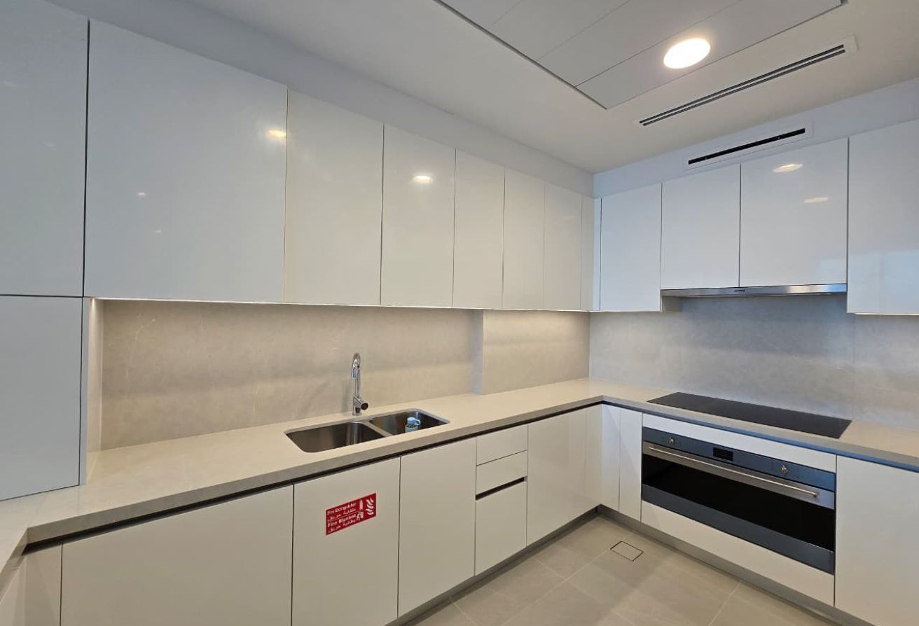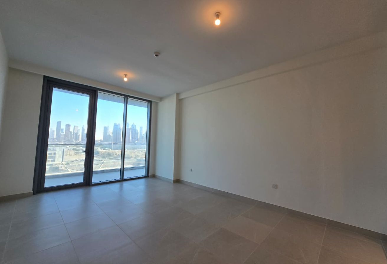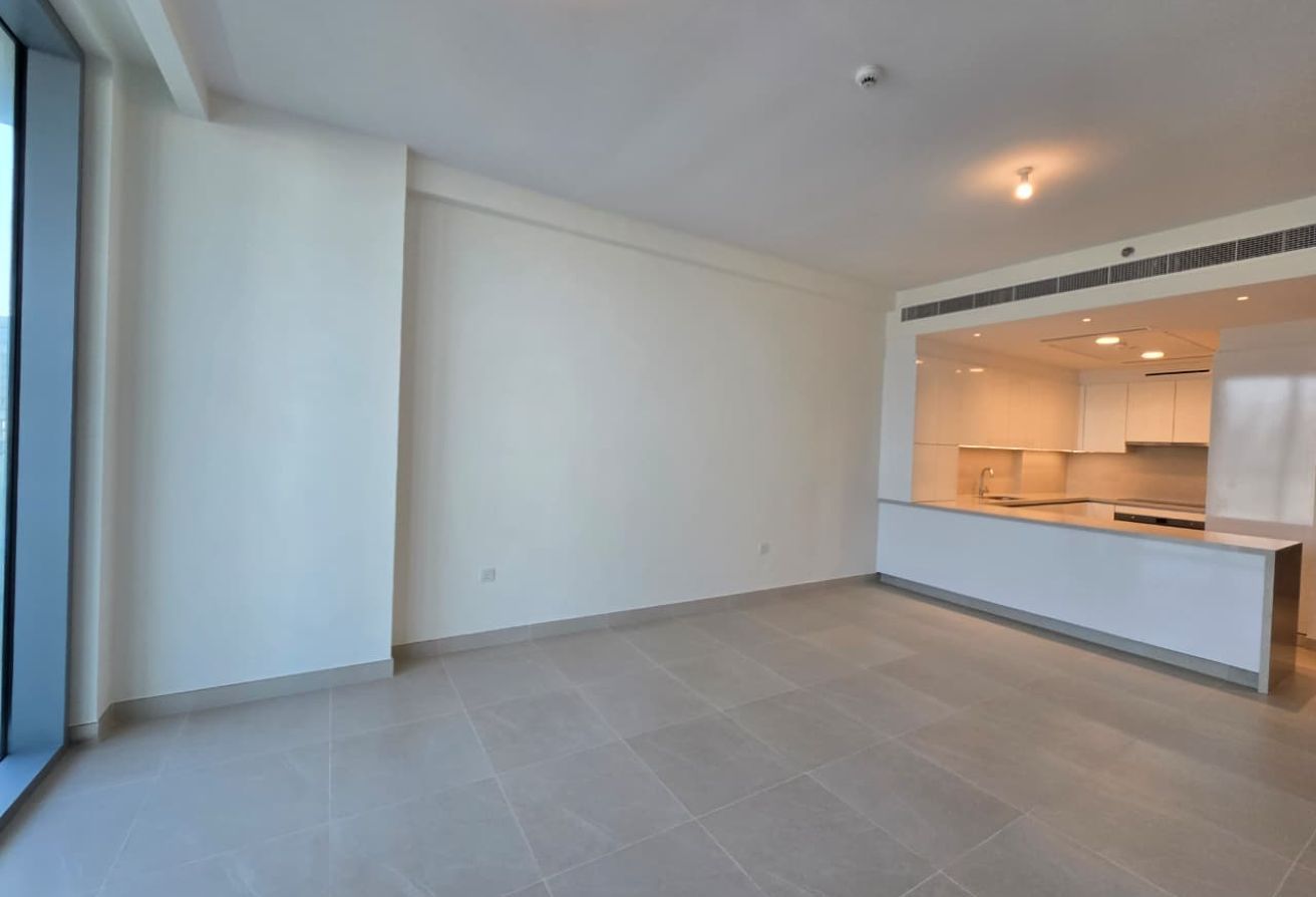 The apartment features a bright open-plan living and dining area with floor-to-ceiling windows that open onto a large private balcony, overlooking the Dubai Water Canal. The layout is thoughtfully designed to maximize space, light, and views.