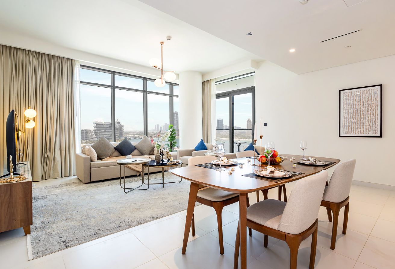 Experience waterfront luxury with this fully furnished 2-bedroom apartment in Marina Vista Tower 1, EMAAR Beachfront, one of Dubai’s most exclusive coastal communities.